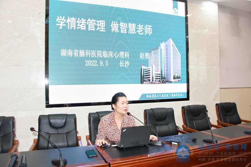 为了大力普及心理健康知识,提升教师心理应用能力和沟通能力,帮助教师了解学生心理和处理学生遇到的心理问题,长沙财经学校荷花池校区在开福区卫健局、开福区教育局、开福区疾控中心的组织下,参与了2022年开福区儿童青少年心理健康促进项目。9月5日下午,学校开展了两场教职工心理健康教育知识讲座,分别由湖南省脑科医院副教授、心理治疗师、国家二级心理咨询师赵蓉教授主讲。